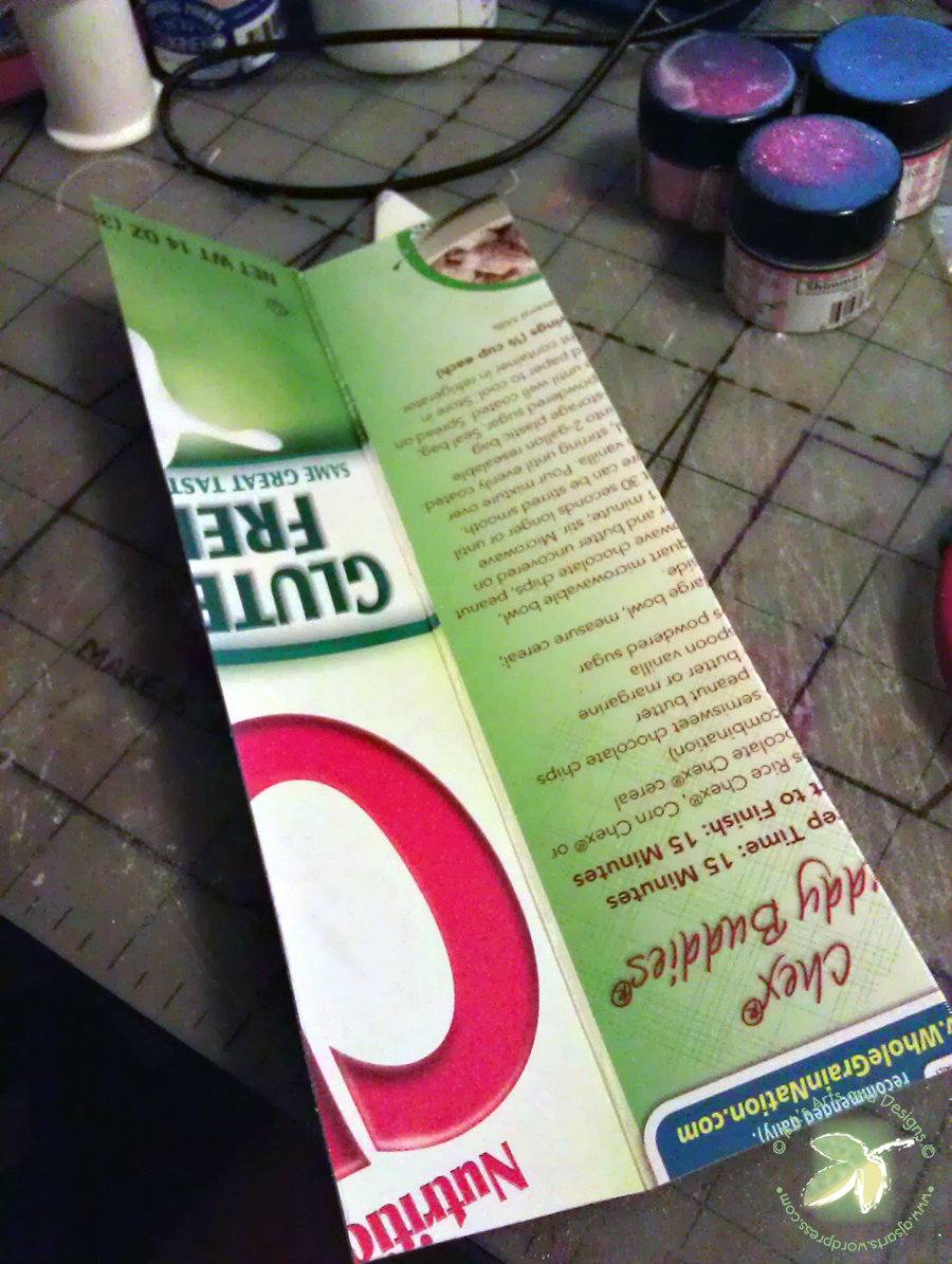 1. Trace bookmark template onto cereal box and cut out (I did mine on a fold).