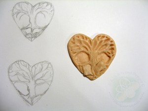 The pendant I created myself out of polymer clay (FIMO®) from a sketch . I then baked the FIMO® Pendant according to the package. Once the piece was cool I created a mold with Amazing Mold Putty. Taking Copper Mica Powder to brush the mold and casted each piece with the quick cast resin from Amazing Crafting Products.