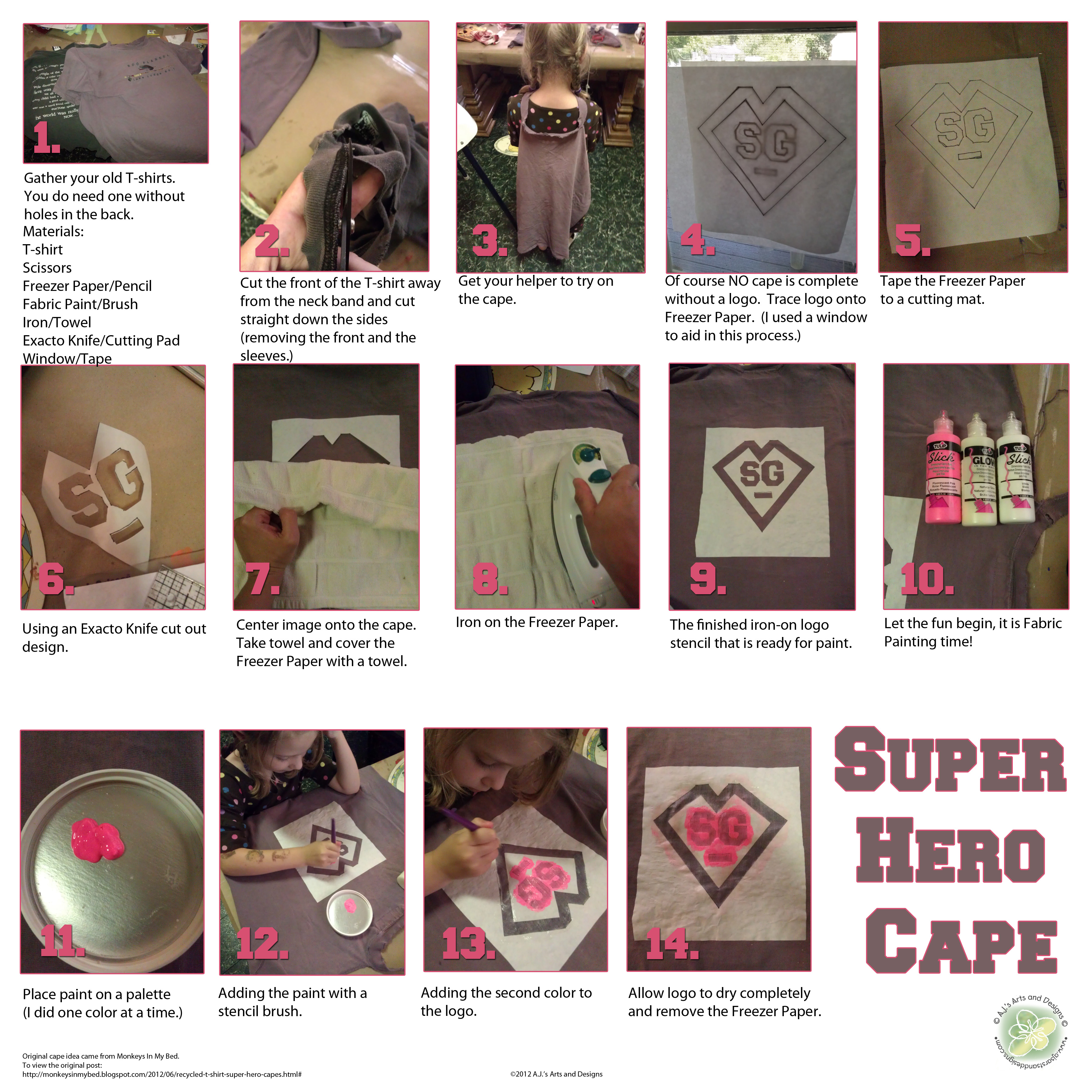 The cape was made from an old t-shirt the idea came from Monkeys in My Bed.  So when a cape was asked for I knew how I was going to make it.