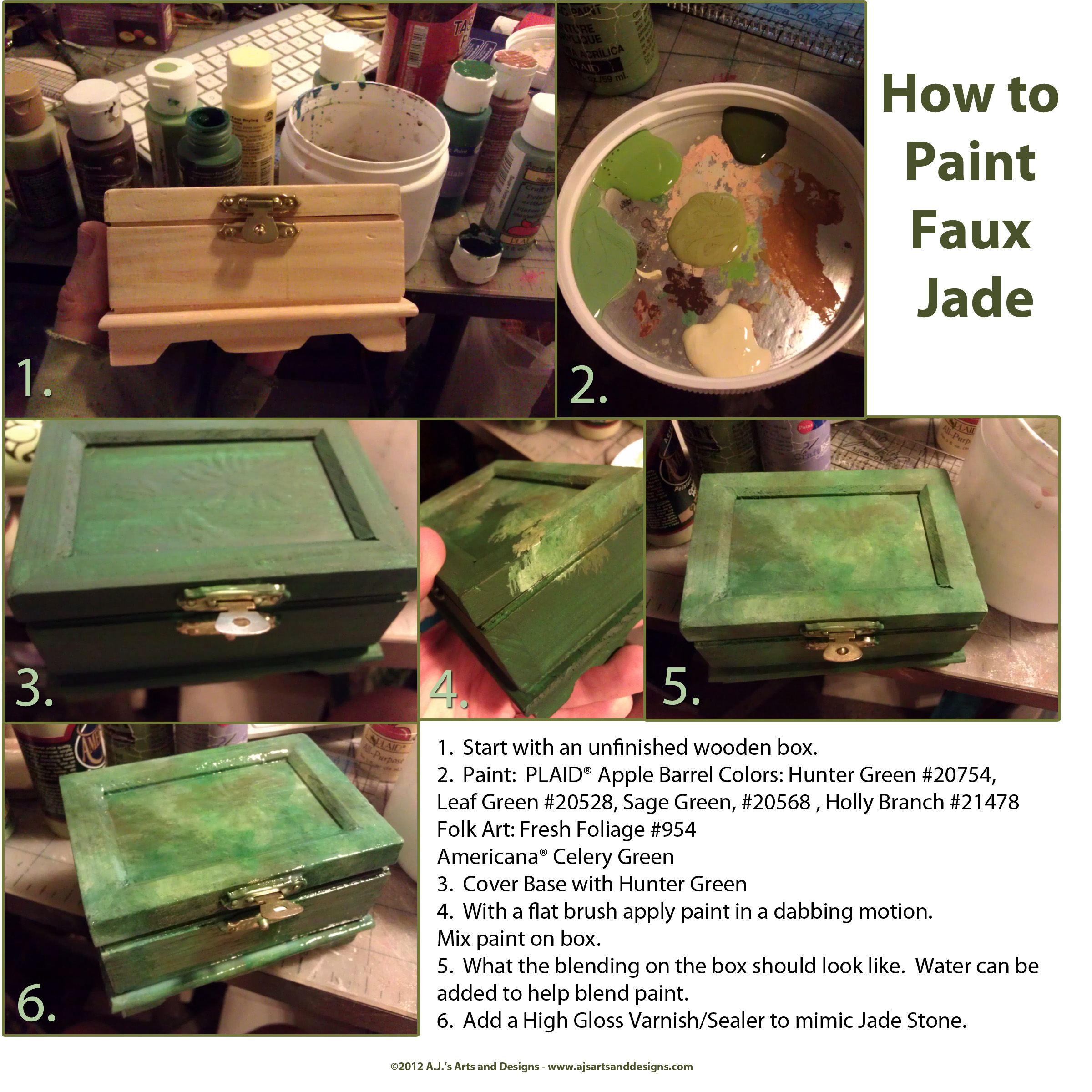 Monday’s post was how to make resin embellishments that looked like faux Jade. This is how I painted the wooden box. Painting faux stone is a speciality of mine, I love the fact you can create the illusion of stone with paint.