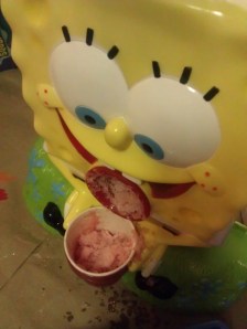 Blowing the dust off the box, I put SpongeBob together. It is very similar to the Snoopy Snow Cone Maker from my childhood.