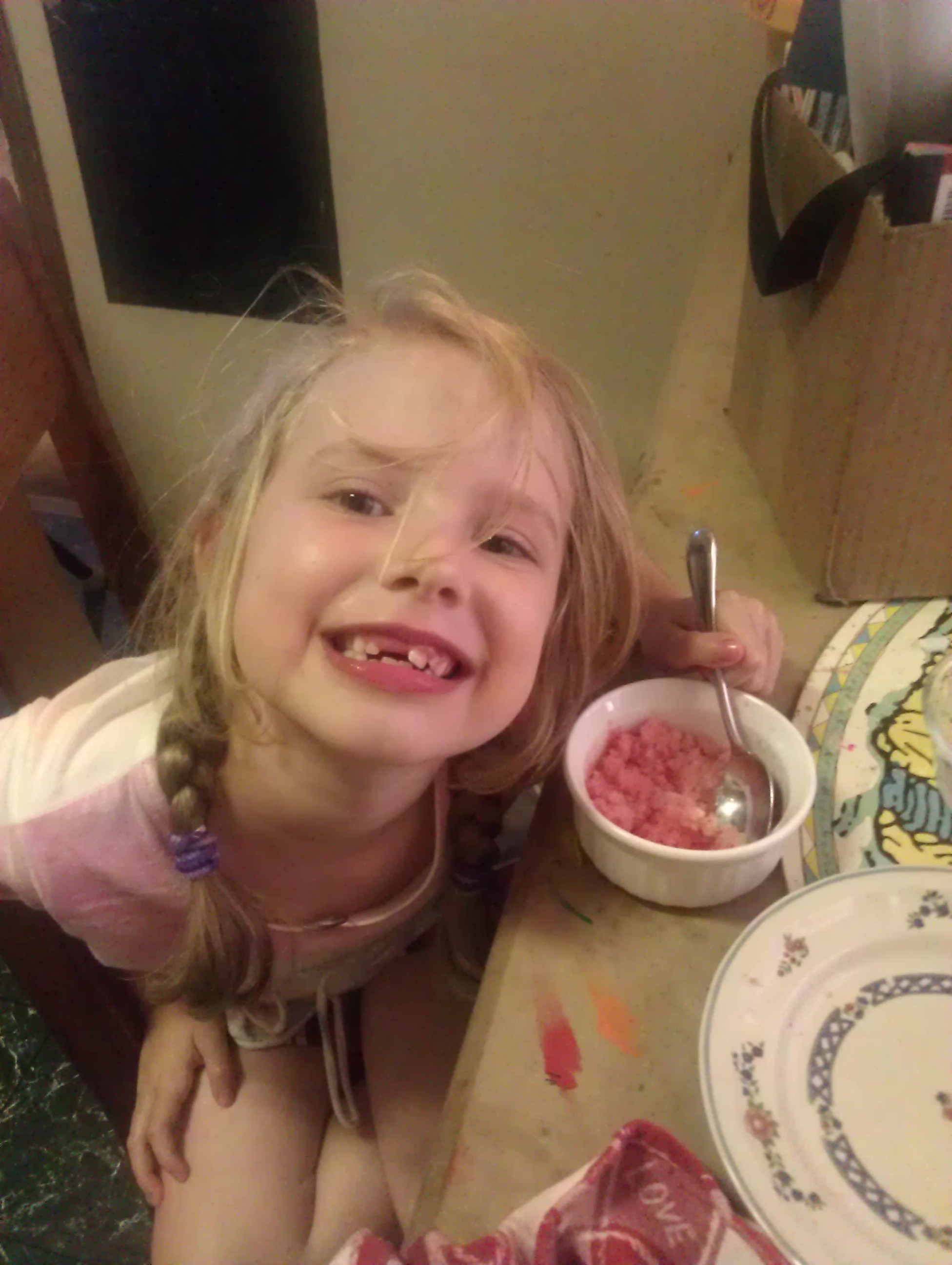 As you can see the Snow Cones was huge hit! To fill the small bowl it took 2 ice cubes. Sweet, cool and very refreshing!