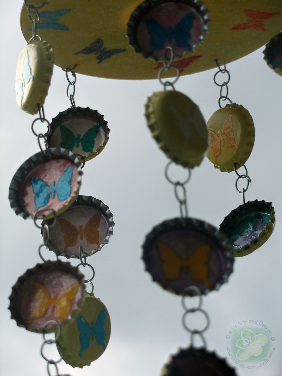 10. Take butterfly punch and punch butterflies out of the acetate. Add butterflies to the inside and the outside of the bottle caps with 3D Crystal Lacquer.