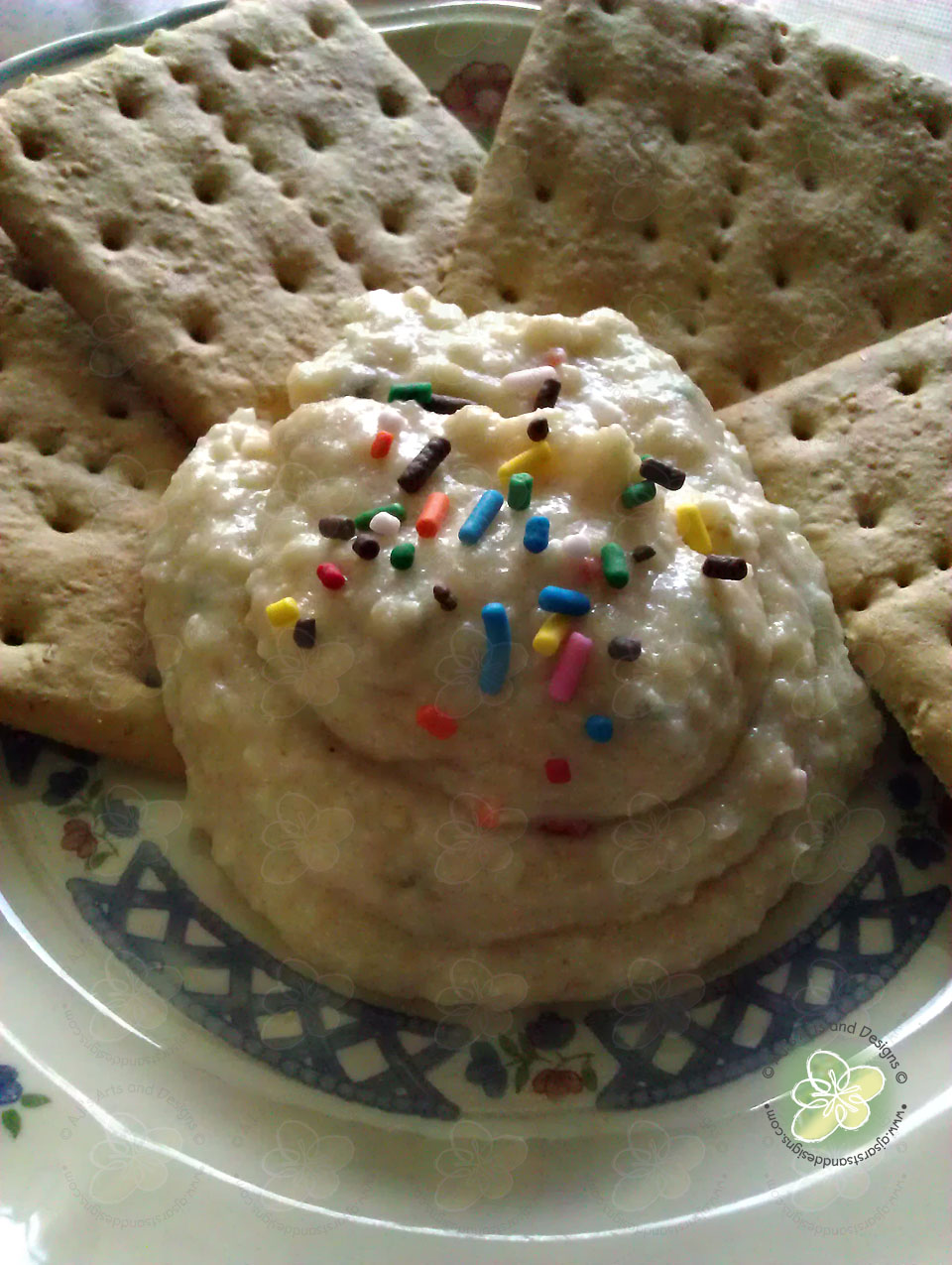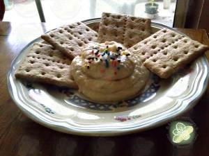 I decided to make her Cake Batter Dip – I did make modifications (hers is healthy than mine) but I used what I had and I didn’t have some of the items she used.