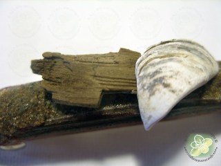 | Close up of the drift wood and the shell |