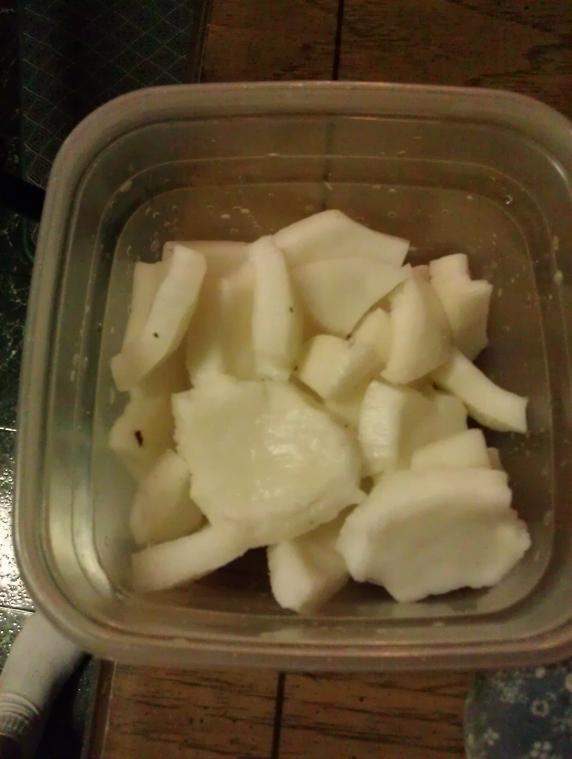 After I separated the coconut from the shell I then peeled the brown from the white, washed it and put it in the fridge.