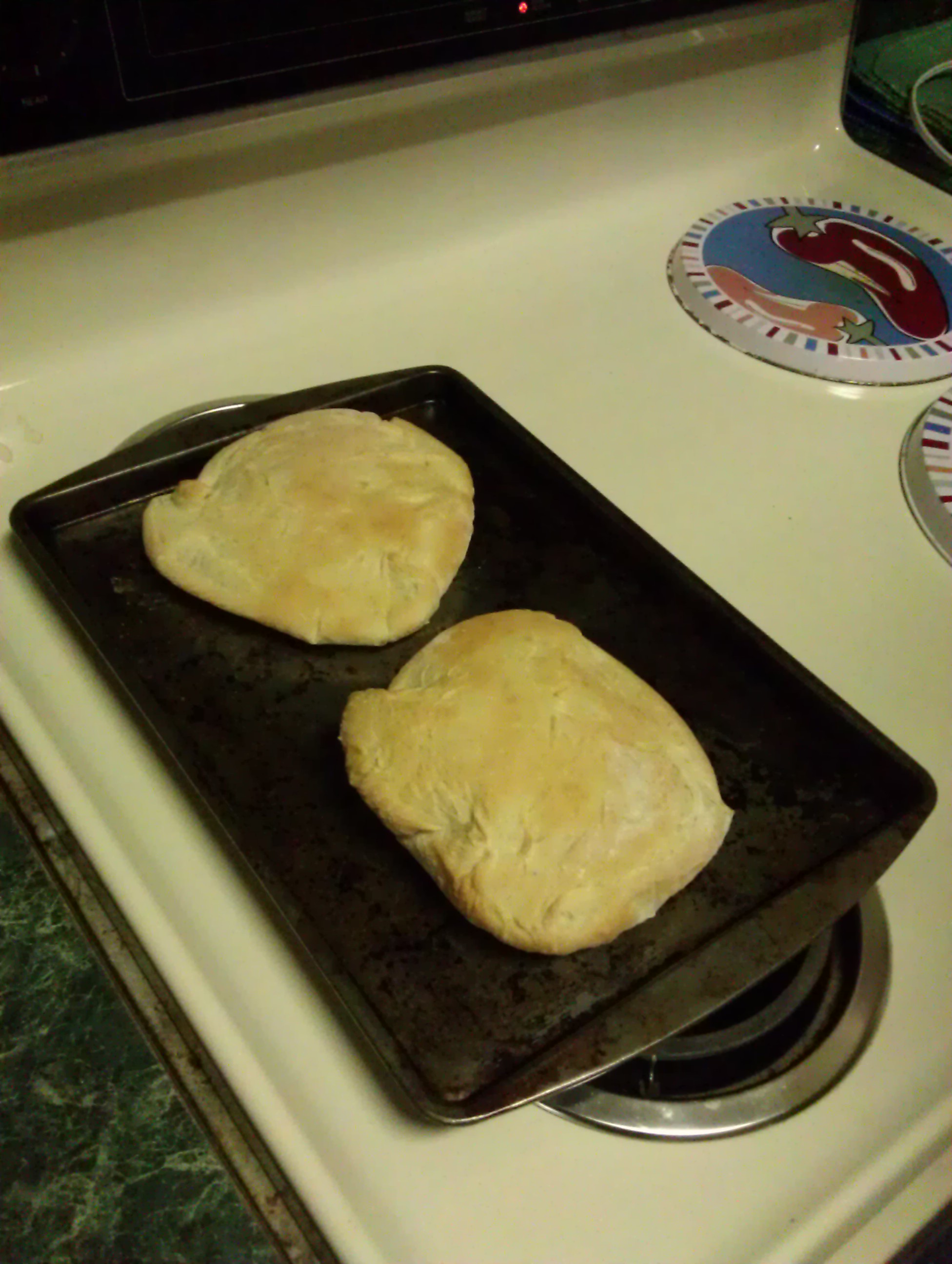 A little late today sorry, been busy but we did bake this weekend and I wanted to share this with y’all. I have been wanting to make pita bread for a while now and just hadn’t gotten around to it. This weekend Jeff said we should try it. We did, I found this recipe on Pinterest from Under the High Chair. They were fantastic one note about the pitas, it was really humid here on Sunday so I needed to use more flour closer to 4 cups to prevent sticking. That also prevented it from puffing as much as hers.