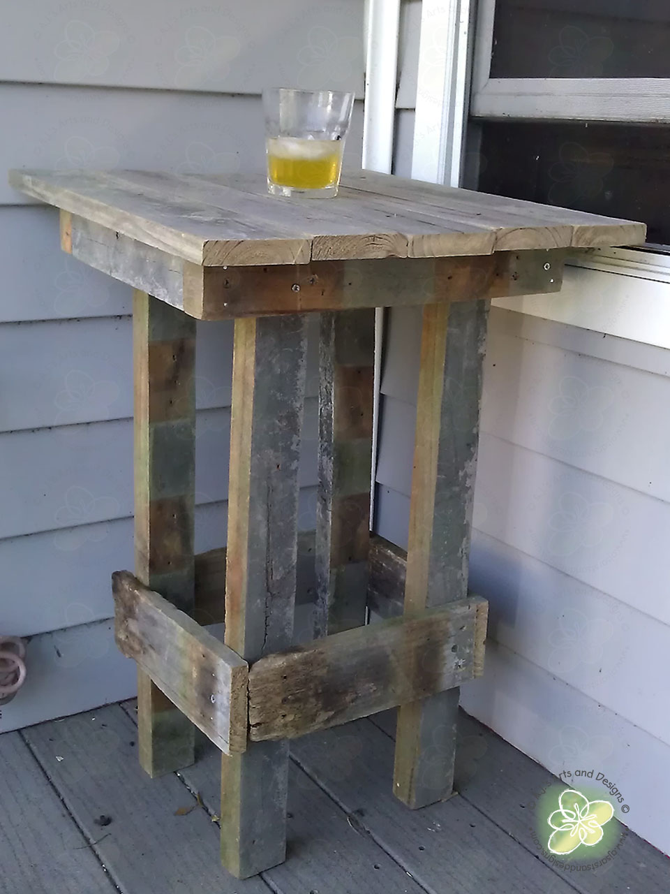 Look at all that wood there was no way I could let it go to waste. I created a very simple table design using the wood (sorry no construct photos and the design I sketched in chalk on the sidewalk). I do plan on maybe doing a plan but I need to take measurements of every thing because I didn’t write anything down when I did it.