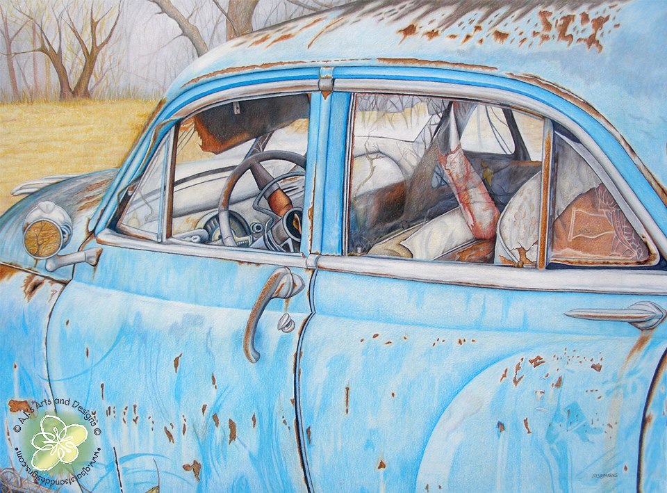 If you want to see my process check out my Facebook Album – Rusty Blue Car Work In Progress.