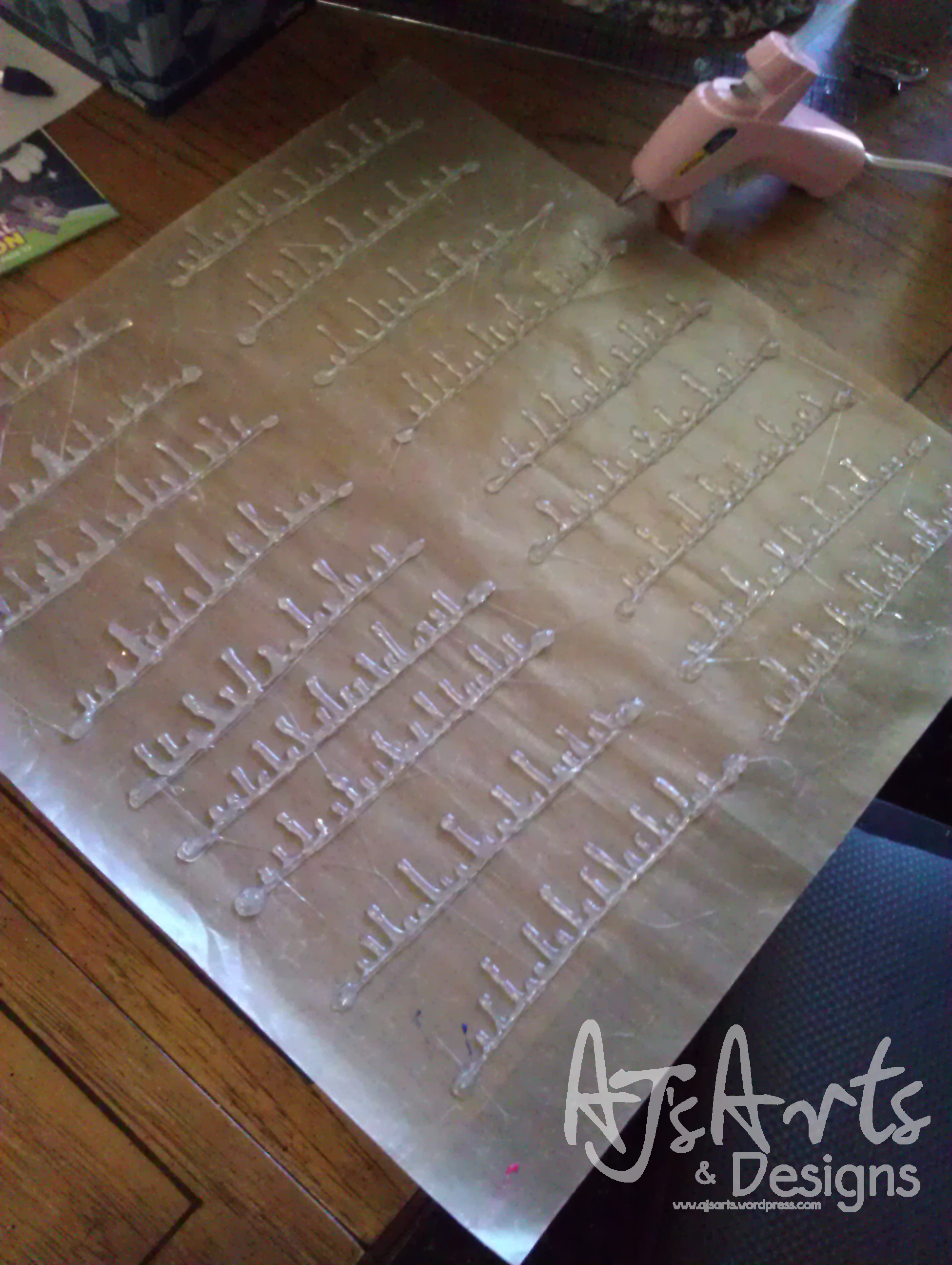 1. Draw with a hot glue gun your design onto the craft mat.
