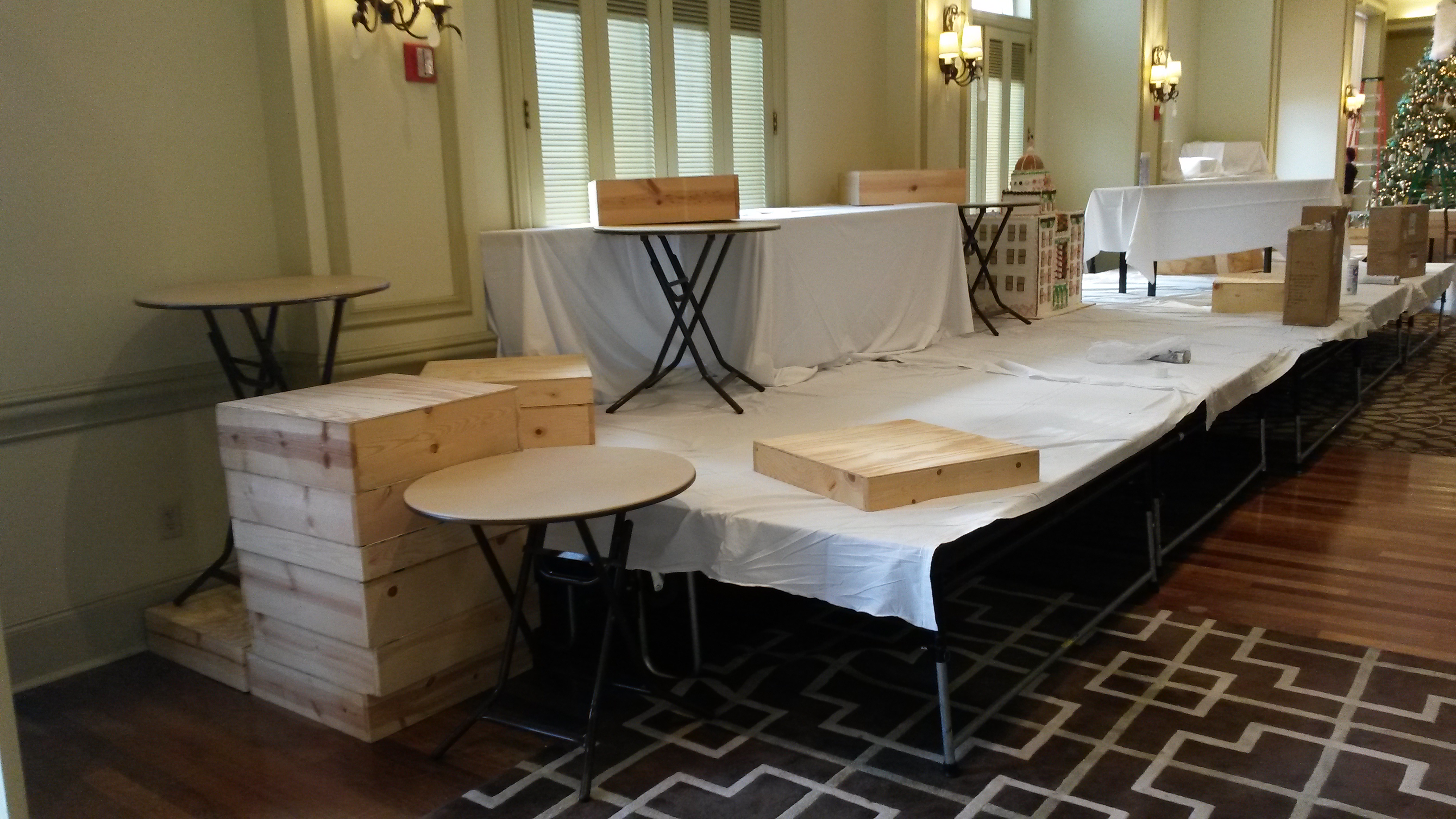 For the past several years I have taken my Girl Scout Troop over to see the Gingerbread Creations so I knew how big the setup was. I was asked in July if I would be willing to do the Gingerbread Competition this year. I was extremely excited and said yes. Christmas is always bitter sweet for me and I wanted something to be excited about. It was a lot of planning, hard work, almost tears but in the end we were able to create a beautiful mountain village.