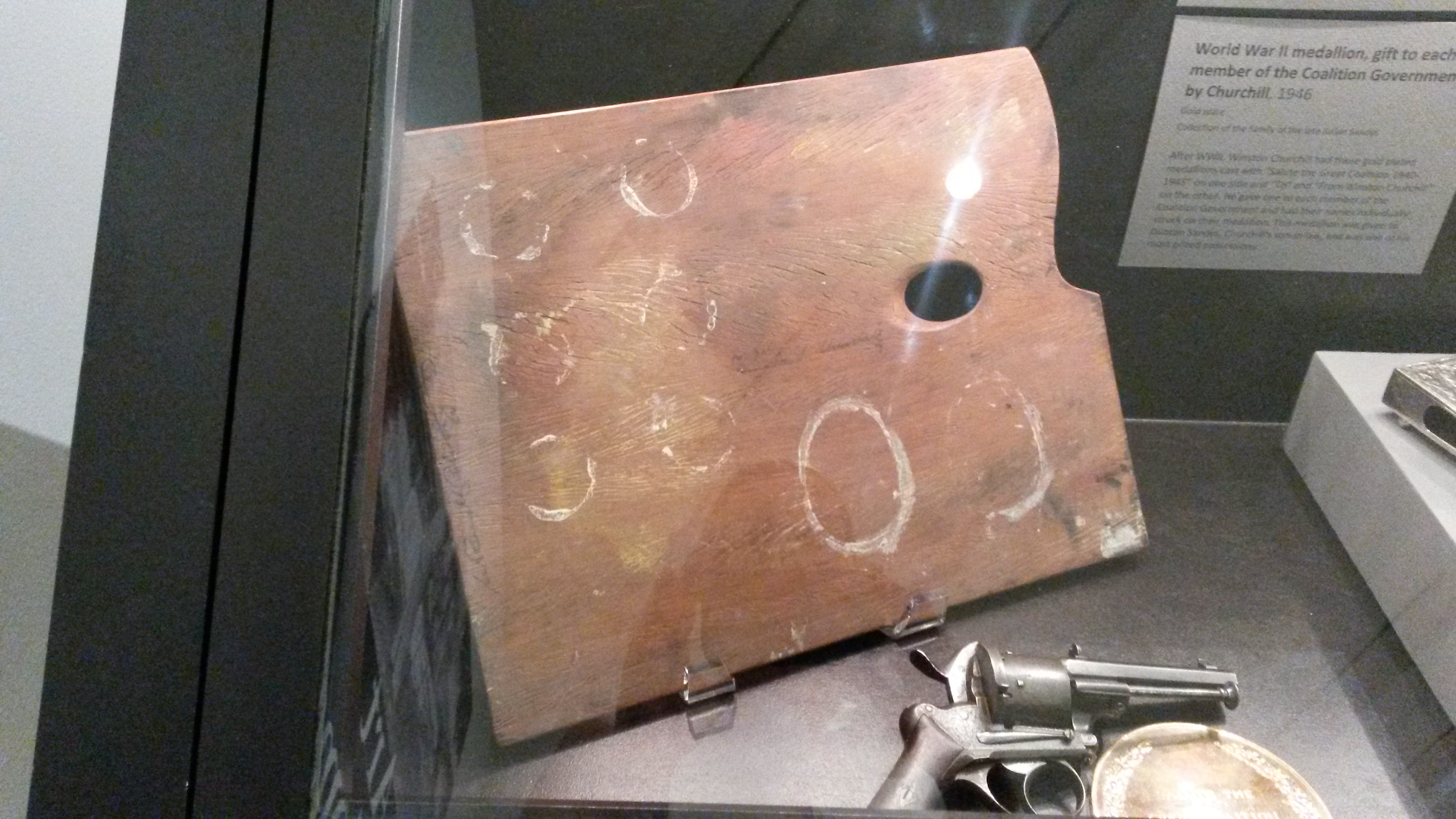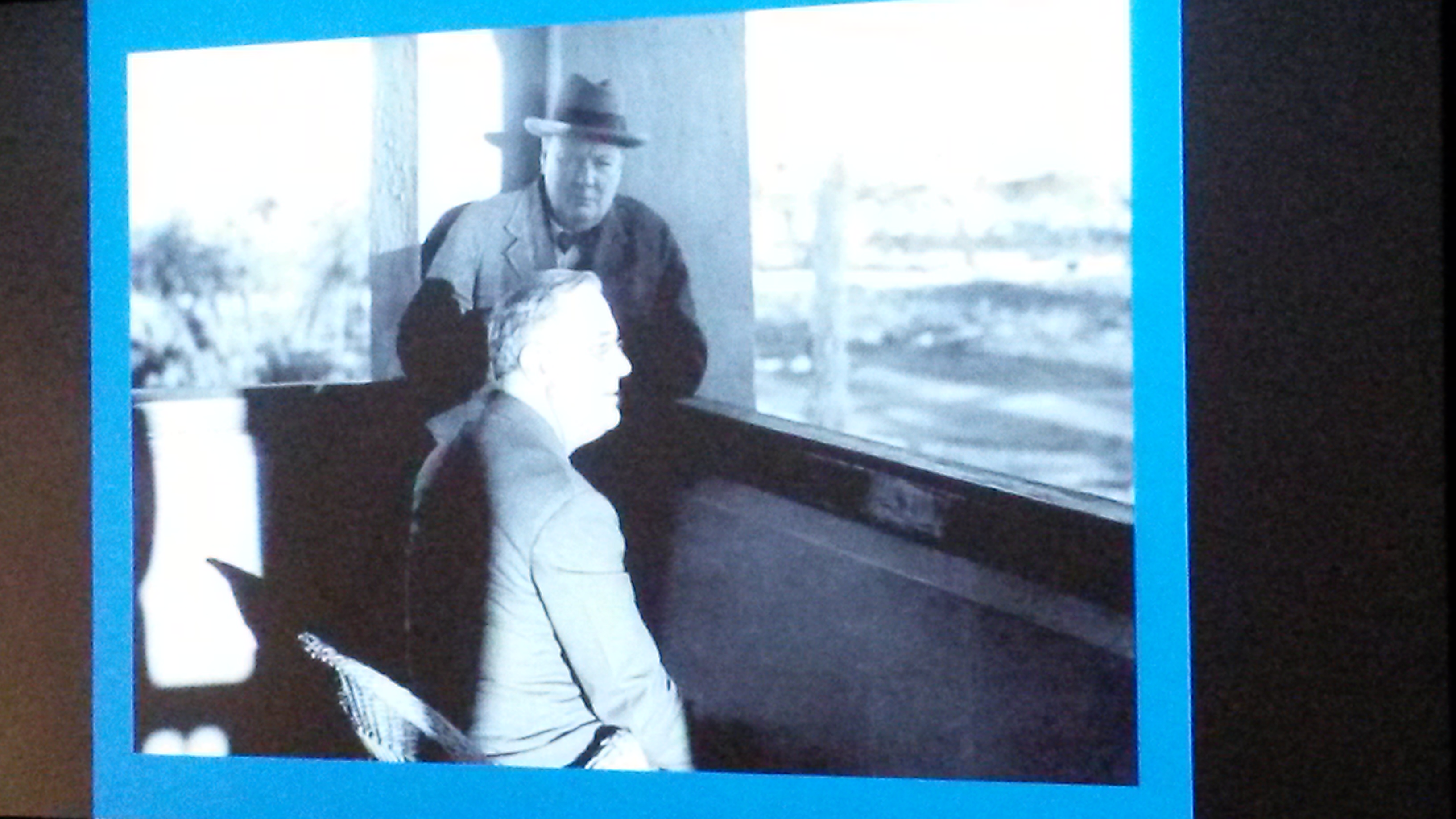 This is me with the painting Churchill did for FDR. The scene is the sunset (painted the next evening) of what FDR was looking at in the earlier photo. I purposefully posted this photo because I want everyone to see this exhibit in person.